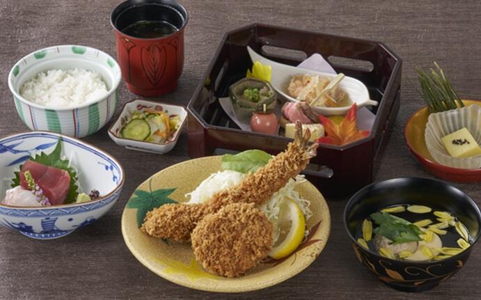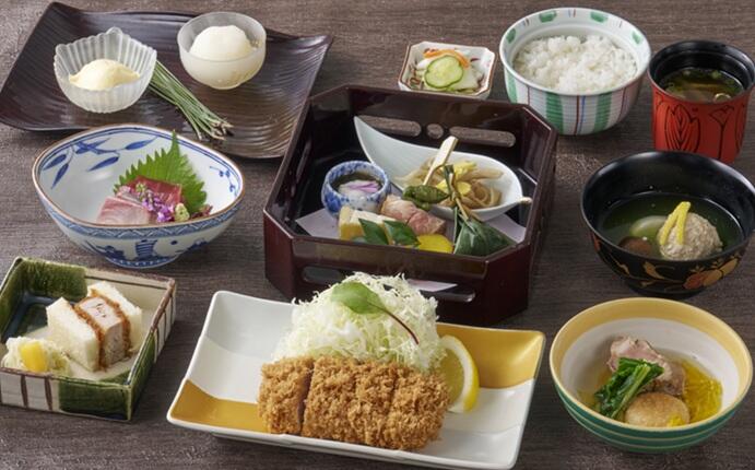 今月のおすすめ膳 黒豚とんかつと広島県産カキフライ膳 ¥2,490(税込み) まい泉自慢の黒豚とんかつと広島県産のカキフライを盛り合わせた御膳です。タルタルソースはもちろん、ソース、レモン×スパイスソルトなど1粒ずつ味を変えて愉しむのもおすすめです。「黒豚」とんかつはヒレまたはロースよりお選びいただけます。