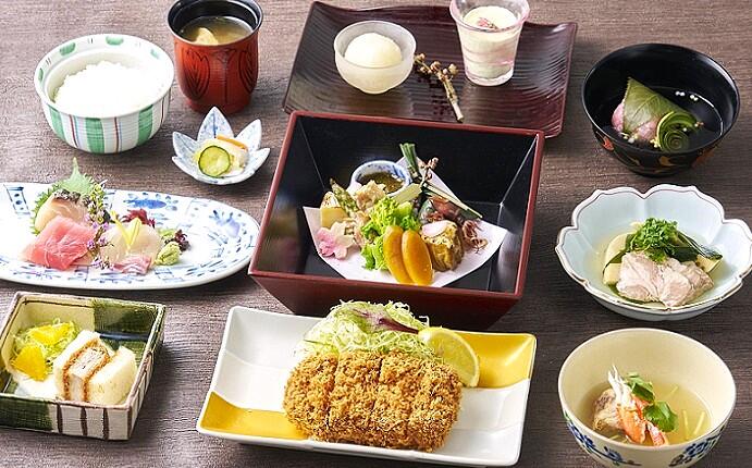 3月・4月の宴会コース 青山(あおやま) <要予約:2日前14時まで> ¥8,300(税込み) 前 菜:黒豚肩ロースと芽キャベツ串 カマンベールチーズ西京漬け 空豆翡翠煮 鯛の子旨煮 よもぎ麩ふきのとう味噌田楽 蛍烏賊とうるいの煎り酒和え 花びらゆり根蜜煮 鰆の唐揚げ凌 ぎ:茶美豚ヒレかつサンド いちごとキャベツ酢 御 椀:黒豚肉団子と若竹の御椀 造 里:鮪と旬魚の三点盛り温 物:黒豚塩角煮の道明寺蒸し強 肴:黒豚肩ロースと新ジャガイモの唐揚げ揚 物:黒豚ヒレかつ(黒豚専用ソースでお召し上がりください)食 事:ご飯 黒豚豚汁 お新香水菓子:わらび餅の黒蜜掛け 季節のシャーベット ※画像はイメージです※+¥1,700 (税込み)で飲み放題の追加可能