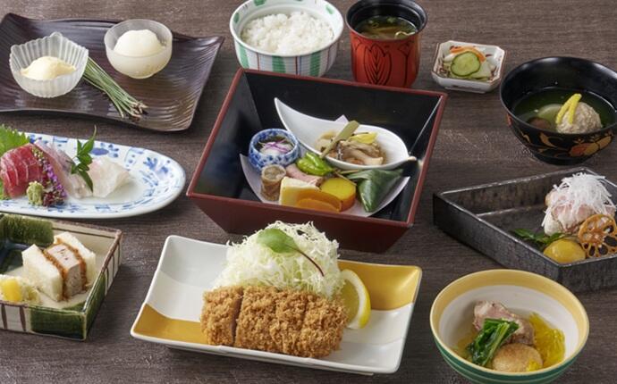 11月の宴会コース 野立(のだて) <要予約:2日前14時まで> ¥5,800(税込み) 前 菜:黒豚肩ロースとしし唐串 鮭ときのこの南蛮漬け さつま芋の檸檬煮 カマンベールチーズ西京漬け 笹麩 落とし芋のもずく酢凌 ぎ:茶美豚ヒレかつサンド 柿とキャベツ酢御 椀:黒豚団子とかぶの白菜すり流し造 里:鮪と旬魚の二点盛り温 物:黒豚塩角煮と蓮根餅の黄にら餡かけ揚 物:茶美豚ヒレかつ食 事:ご飯 黒豚豚汁 お新香水菓子:胡麻豆乳プリン 季節のシャーベット※画像はイメージです※+¥1,650 (税込み)で飲み放題の追加可能