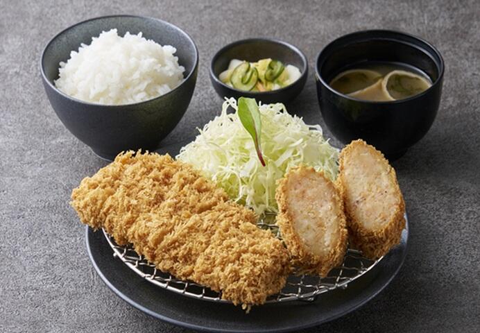 4月のおすすめ膳 とんかつと駿河湾産桜エビのコロッケ膳 ¥1,650(税込み) まい泉自慢のとんかつと自社で釜揚げし香ばしく炒めた駿河湾産桜エビのコロッケを盛り合わせ御膳です。とんかつはヒレまたはロースよりお選びいただけます。